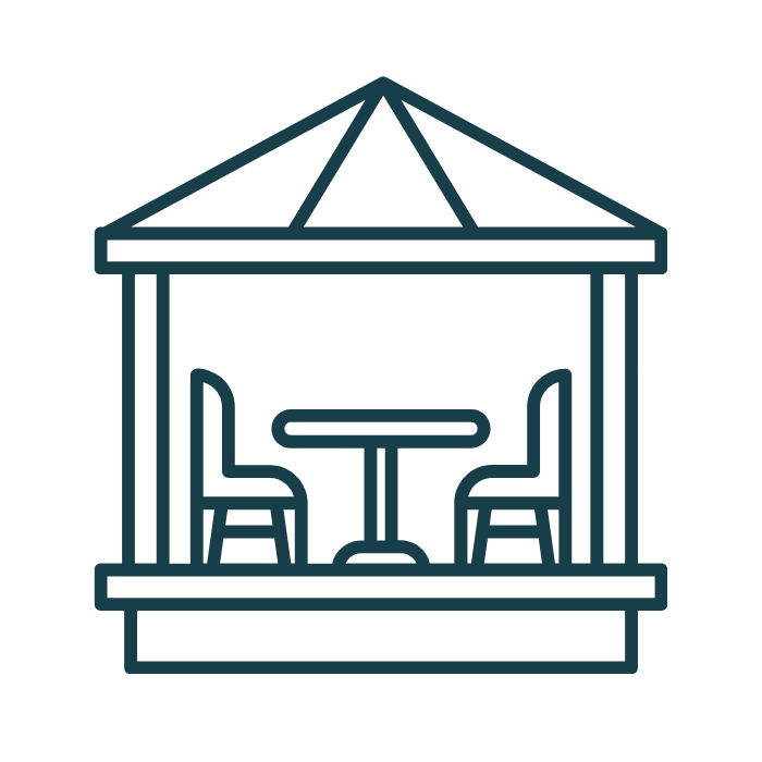 A 40 m²-es fedett terasz ideális helyszín egy esti borozáshoz, társasjátékhoz vagy egyszerűen a Körös-parti csend élvezetéhez. 8 fős asztalunk tökéletes a hangulatos étkezésekhez.